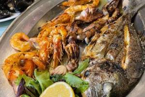 Fish Tavern Blue Scorpion Marine, situated on the picturesque island of Corfu, Greece, is a charming seafood restaurant known for its exceptional cuisine and stunning seaside location. This delightful taverna offers a fresh and authentic taste of the Ionian Sea, making it a favourite among locals and visitors who seek a genuine Greek maritime dining experience. Nestled along the beautiful coastline of Corfu, the Fish Tavern Blue Scorpion Marine boasts a captivating setting. Its exterior, reflective of traditional Greek seaside tavernas, features a rustic and inviting look with whitewashed walls and blue accents, mirroring the colours of the sea and sky. The highlight of the taverna is its outdoor seating area, which provides diners with breathtaking views of the sparkling Ionian waters and the gentle rhythm of the waves. Upon entering the taverna, guests are greeted by a cosy, casual, welcoming, and relaxing atmosphere. The interior is adorned with nautical-themed decorations, such as fishing nets and maritime artefacts, enhancing the taverna's authentic marine charm. The seating arrangement maximises comfort and provides an ideal setting for enjoying a meal with friends and family.