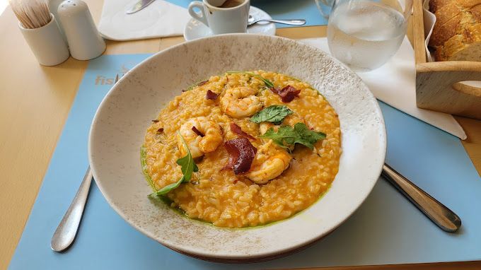 Fishalida, situated on Corfu, Greece's stunning and culturally rich island, is a celebrated seafood restaurant known for its exceptional cuisine and captivating seaside ambience. This exquisite dining spot, nestled along the picturesque coastline, offers a unique and memorable culinary journey into the heart of Greek maritime flavours. The restaurant is ideally located to embrace the natural beauty of the Ionian Sea, with its tranquil blue waters and gentle sea breezes. Fishalida's exterior is a harmonious blend of traditional Greek and nautical themes, featuring whitewashed walls with blue accents reminiscent of the classic Greek island colour palette. The outdoor seating area is a highlight, offering diners breathtaking views of the sea and the opportunity to dine under the canopy of the Greek sky, accompanied by the soothing sounds of the waves. Inside, Fishalida presents an inviting and elegant atmosphere. The decor is tastefully done, combining marine-inspired elements with a touch of Mediterranean charm. The interior space is thoughtfully designed to provide a comfortable and sophisticated dining experience, with natural light streaming through large windows, enhancing the airy and fresh ambience.